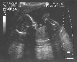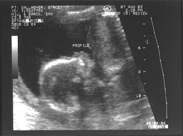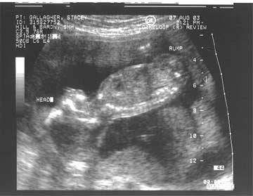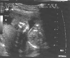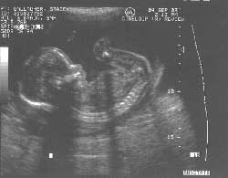 Here's little Austin when Stacey was 21 weeks 5 days pregnant. Austin is measuring right on schedule! He weighs one pound at this time.